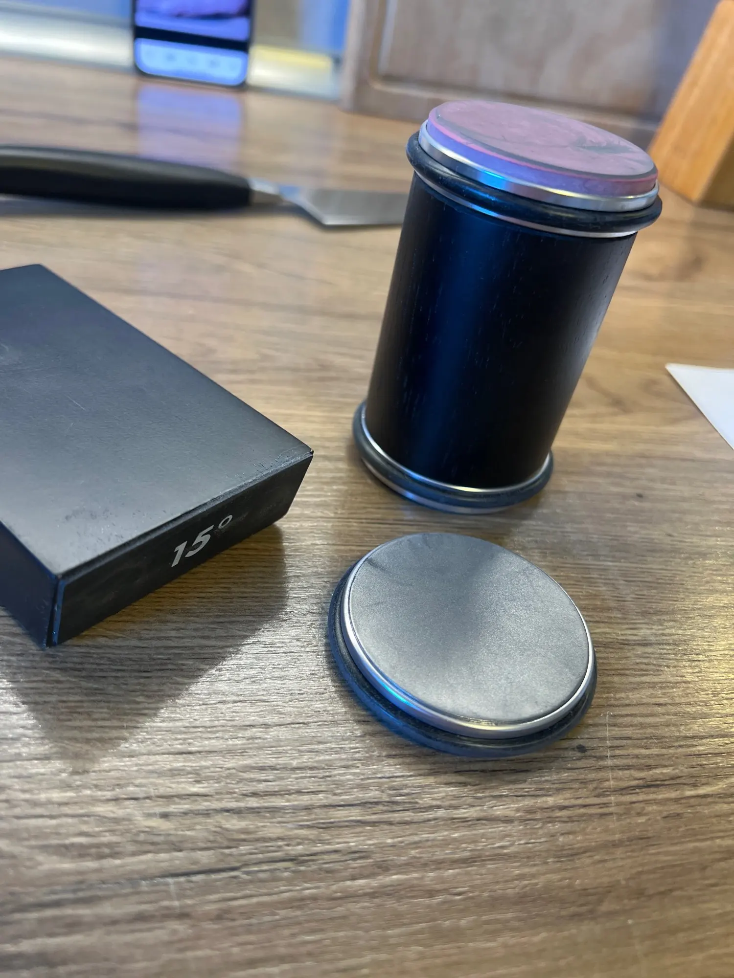 Crafted with high-quality materials, this sharpener doesn’t just perform but also enhances the aesthetic of your kitchen. Its wooden base adds a sophisticated touch, making it a practical and beautiful tool you'll love using.